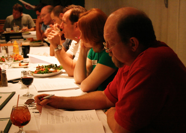 Bill Stine follows along in the script, waiting for his lines as Father.